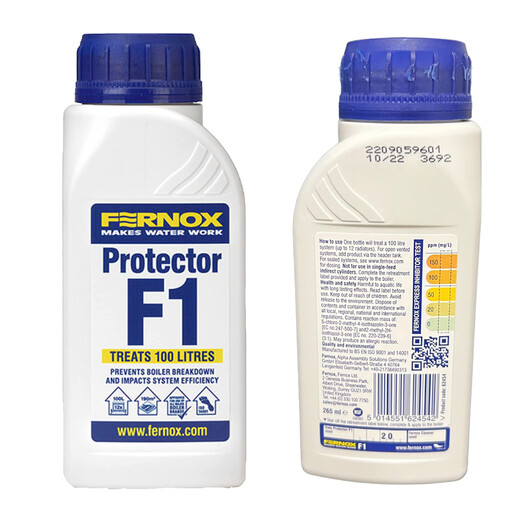 Priemonė Fernox "Protector F1" apsaugo metalus nuo korozijos bei neleidžia susidaryti nuoviroms. Šio priedo dėka sklandžiai ir ekonomiškai veikia katilas, padidėja visų šildymo įrenginių darbo našumas, suvartojama iki 15 proc. mažiau dujų.